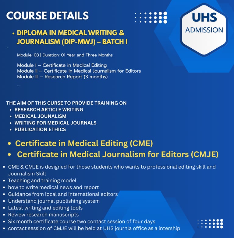 Diploma in Medical Writing & Journalism (Dip-MWJ) - 170,000 (One Hundred and seventy thousand)
