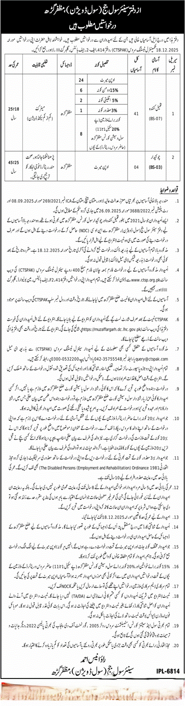 Civil Court Muzaffargarh Jobs 2025 November / December Application Form
