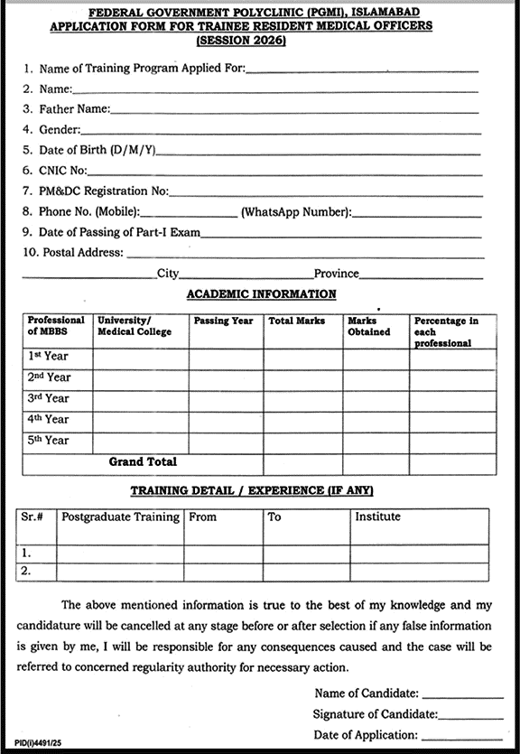 Federal Government Polyclinic Islamabad Postgraduate Training Program November 2025 December PGMI Latest 3