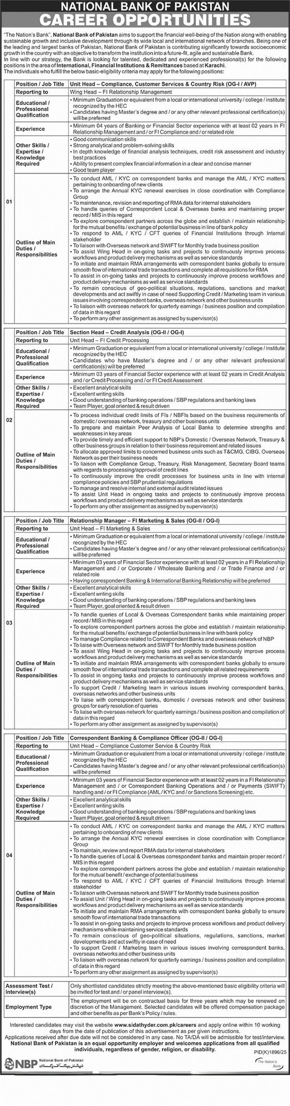 Unit / Section Head Jobs in National Bank of Pakistan November 2025 December
